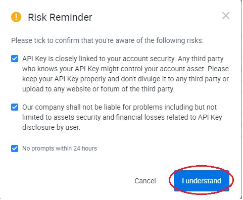 (1)Check all the prompts on the [Risk Warning] page and click [I Know]