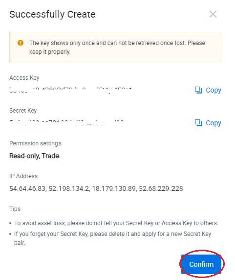 [Permission settings (Multiple choice)] Check [Read-only] and [Trade].