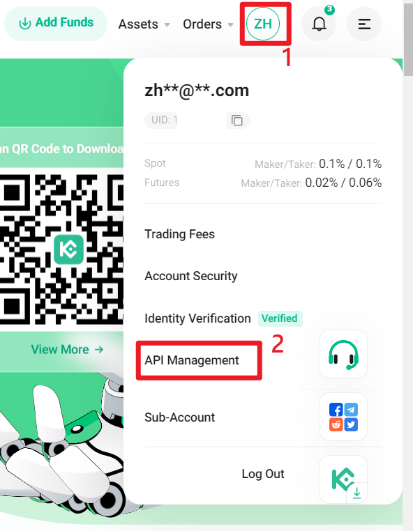 (2) Click on your profile picture, then find 【API Management】 and click on it.